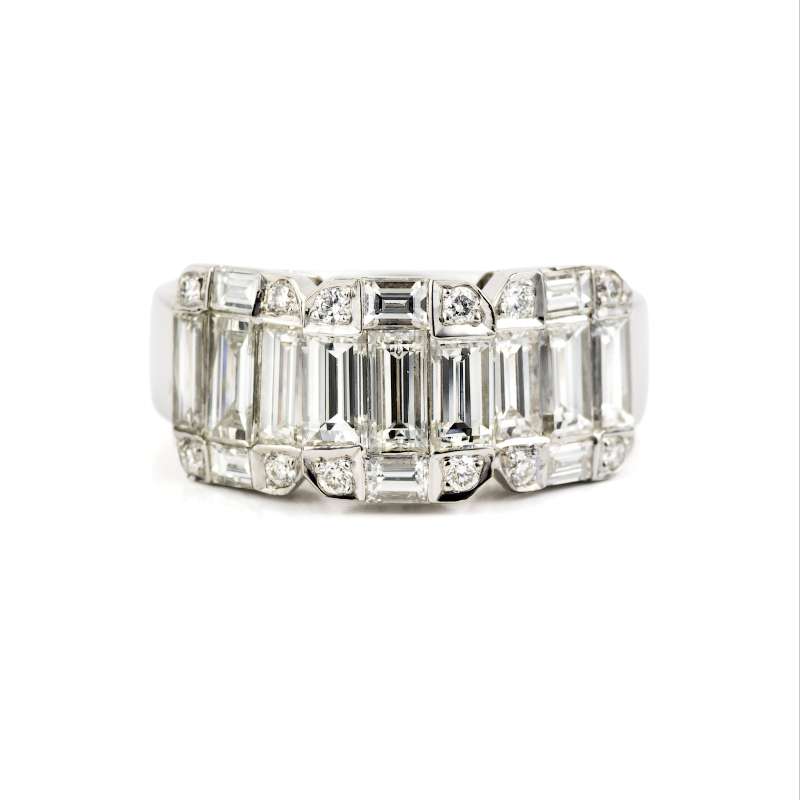 18k White Gold Baguette and Round Brilliant Cut Diamond Ring 2.31ct G/H VS