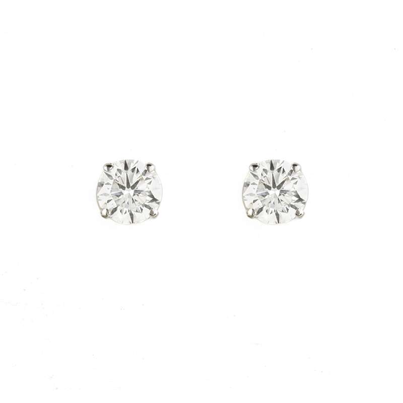 A pair of 18k white gold diamond studs. Each round brilliant cut diamond stud weighs approximately 0.43ct, is colour H and VS1 clarity. The studs are set in a classic 4 claw setting and have a gross weight of 1.30 grams.