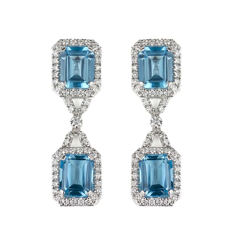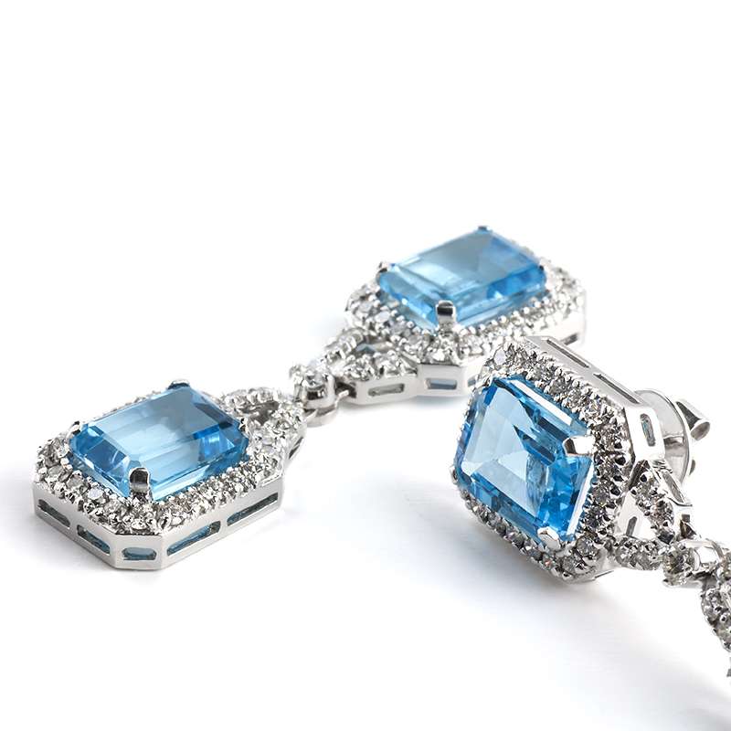 18WG Diamond and Topaz Drop Earrings