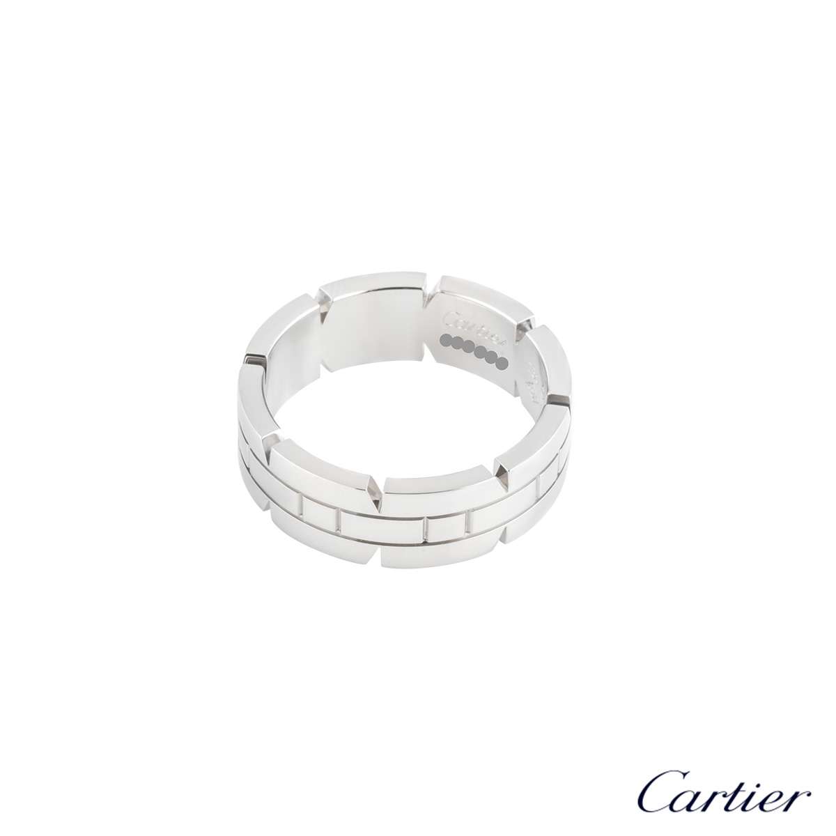A beautiful 18k white gold Tank Francaise ring from the Links and Chain collection by Cartier. The ring is composed of the iconic triple row of brick work motifs throughout. The 7mm ring is size S and has a gross weight of 12.51 grams.
