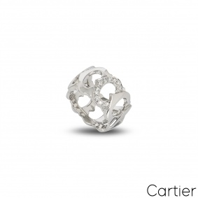 A lovely platinum pink sapphire & diamond ring by Cartier from the Meli Melo collection. The ring is tension set with a marquise cut, oval cut and pear cut pink sapphires totalling approximately 1.30ct. The pink sapphires alternate with 3 round brilliant cut diamonds totalling approximately 0.15ct, E-F colour, VS clarity. The 2.3mm knife edge band is a size K and has a gross weight of 6.5 grams.