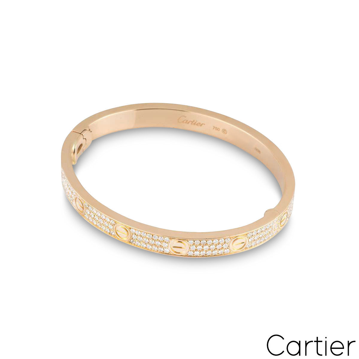 Cartier Rose Gold Full Diamond Love Bracelet Size 18 B6040618