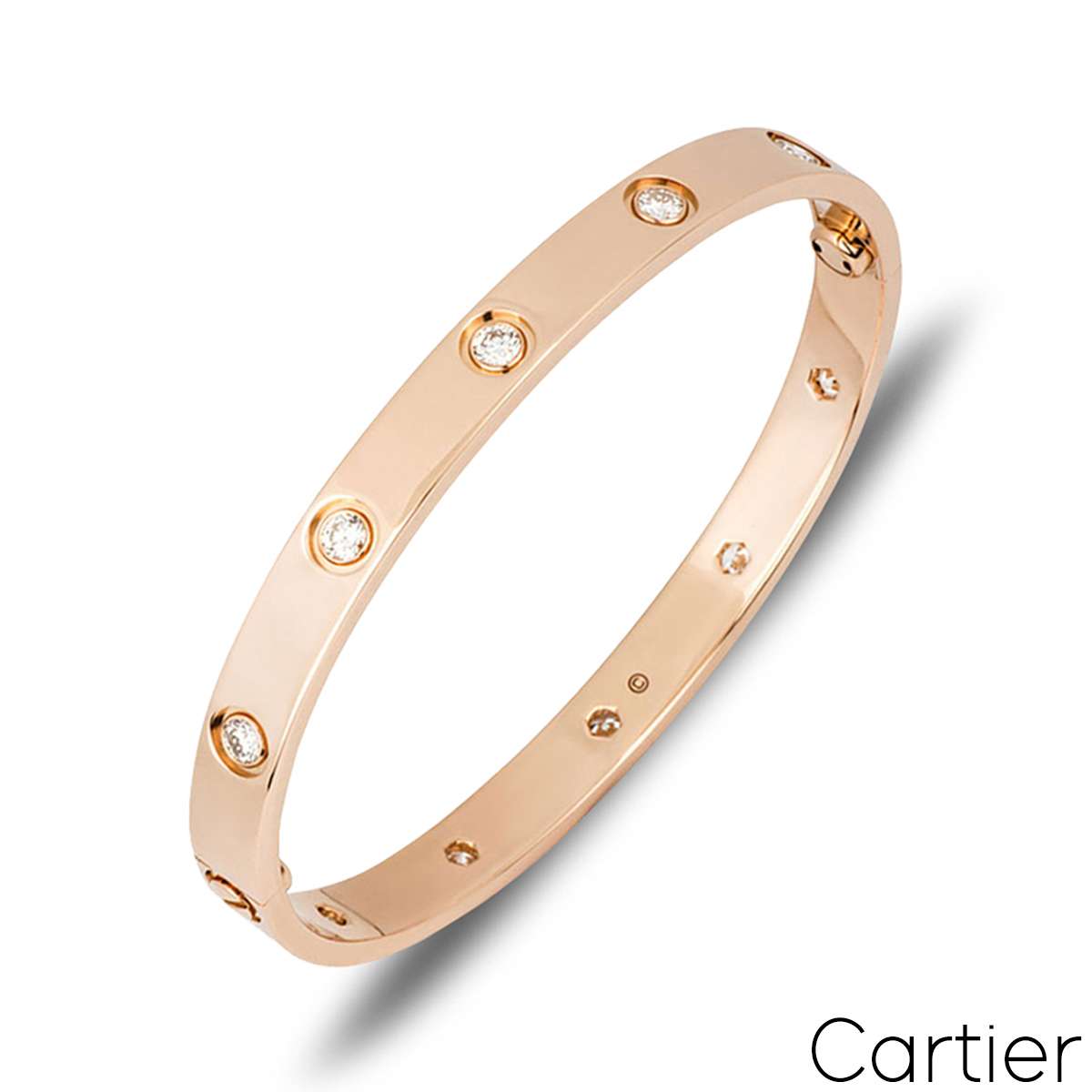Cartier Rose Gold Full Diamond Love Bracelet Size 20 B6040620