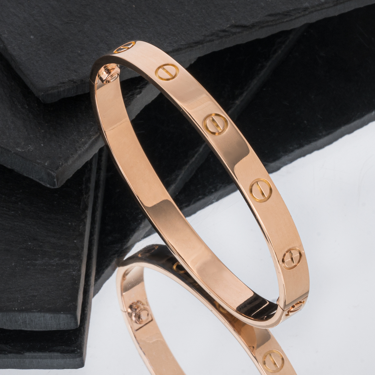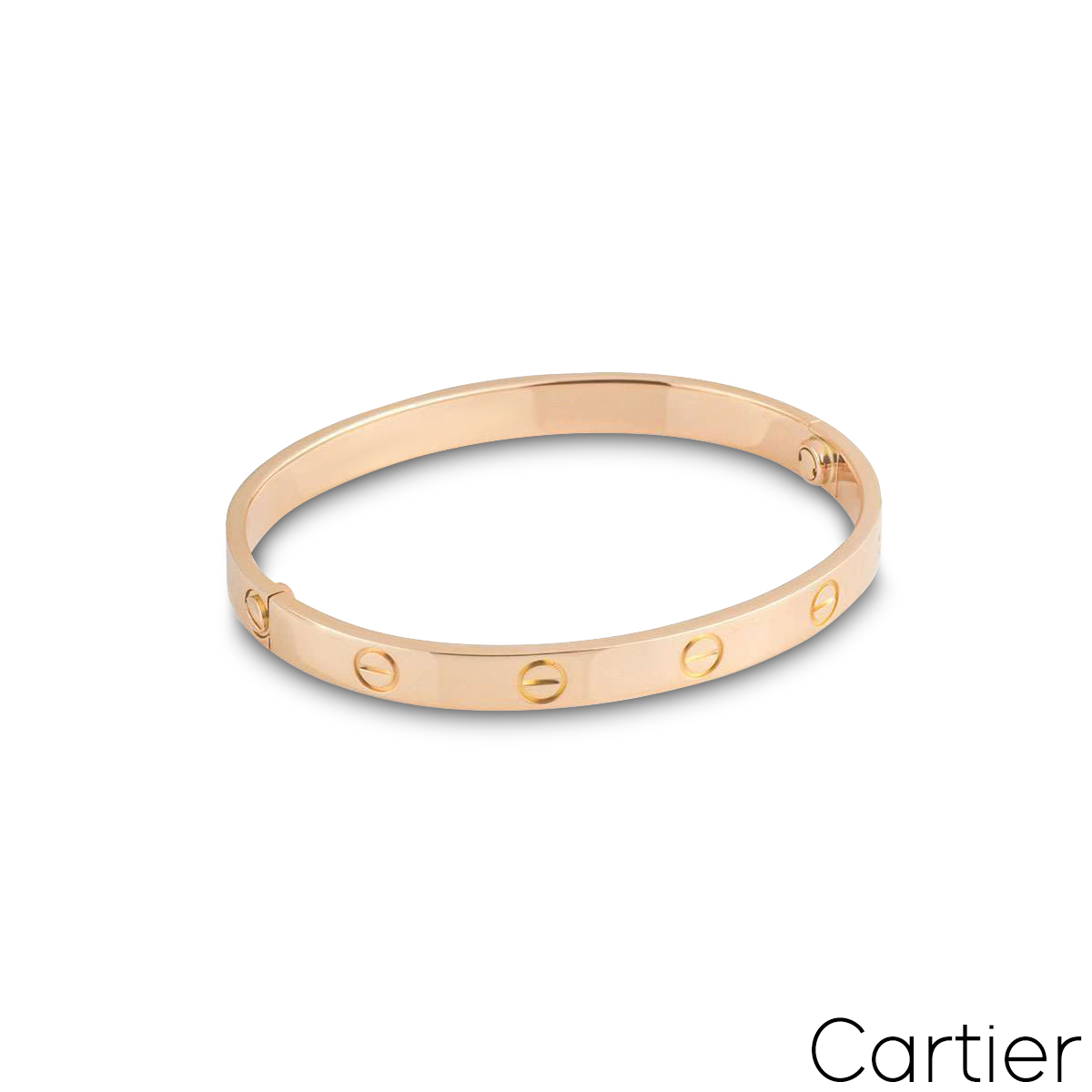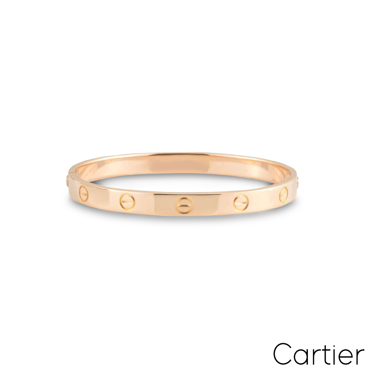 An iconic 18k rose gold Cartier bracelet from the Love collection. The bracelet comprises of the iconic screw motifs around the outer edge. The bracelet is a size 17 and features the new style screw system with a gross weight of 31.2 grams.