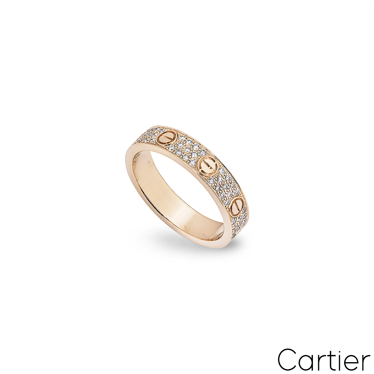 Cartier Rose Gold Pave Diamond Wedding Love Ring Size 52 B4085800