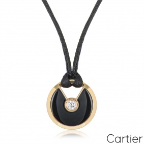 An 18k white gold Cartier ring from the Amulette de Cartier collection. The ring comprises of a circular talisman motif which has a single bezel set round brilliant cut diamond set to the centre and 19 round brilliant cut diamonds pave set throughout. The diamonds have an approximate total weight of 0.45ct, E-F all well matched in colour and clarity. The ring is a size N and has a gross weight of 3.8 grams.