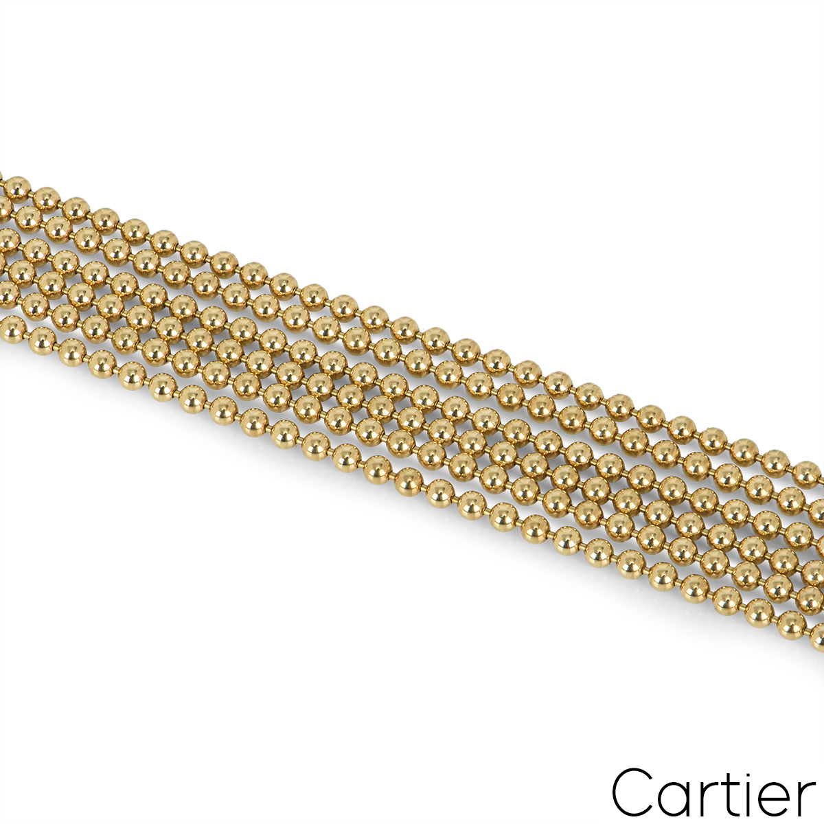A unique 18k yellow gold bracelet by Cartier from the Draperie Decollete collection. The bracelet features 6 beaded strands and finishes with a double loop clasp with an extra spring ring clasp for added security. The bracelet fits a wrist size of up to 6 3/4 inches and has a gross weight of 29.79 grams.