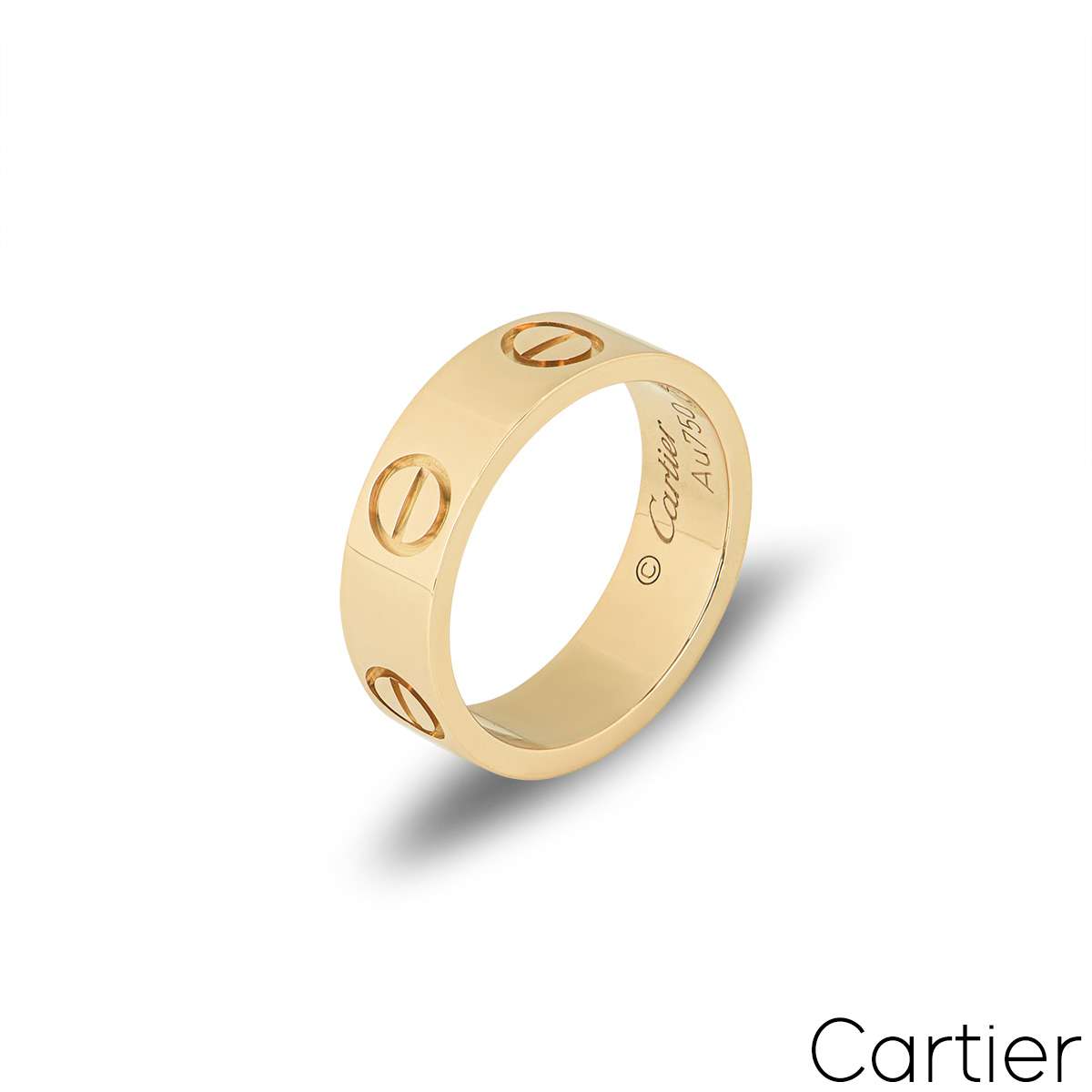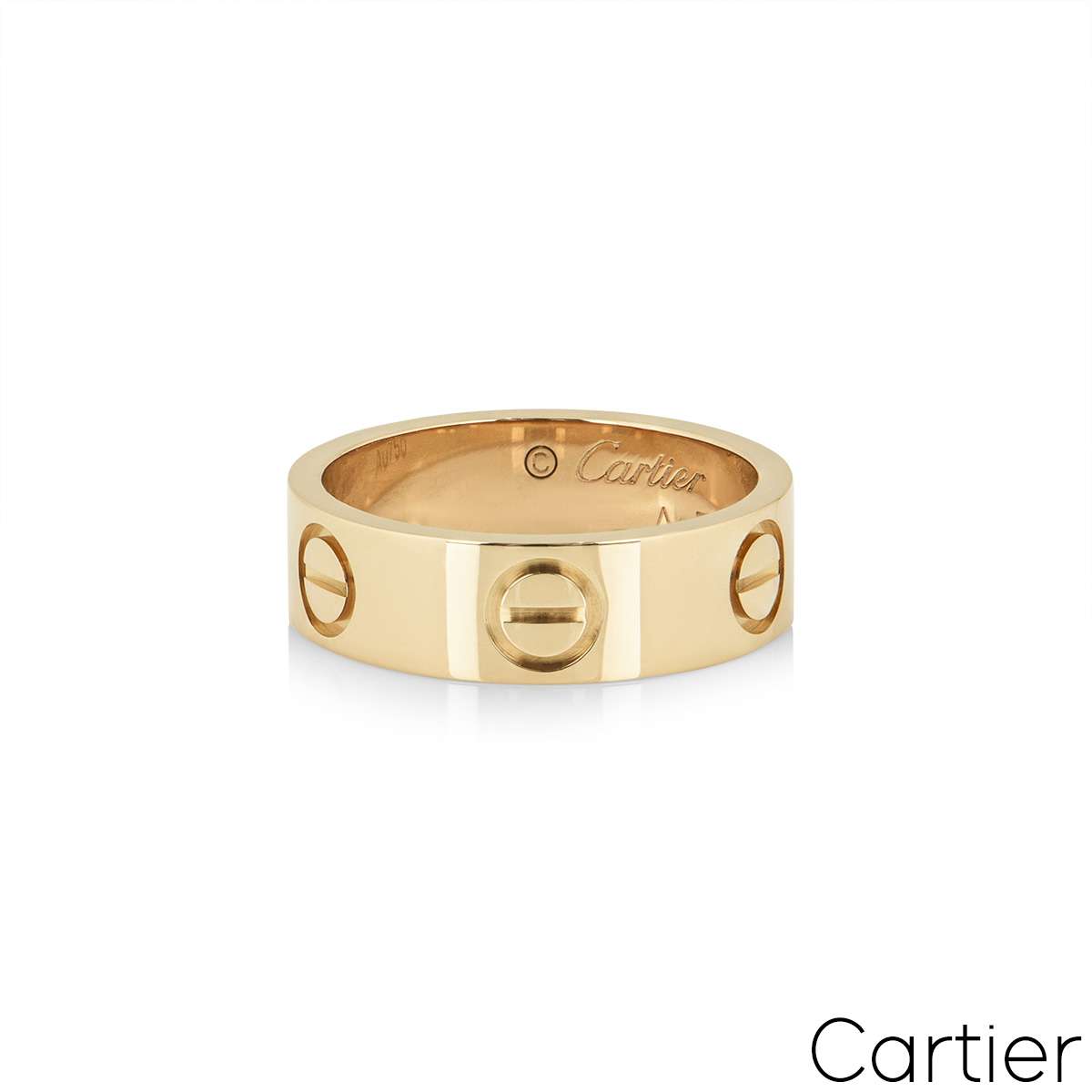 An 18k yellow gold ring from the Cartier Love collection. The ring features the iconic screw motif throughout the centre of the band. The 5.5mm wide ring is a size 67 and has a gross weight of 7.30 grams.
