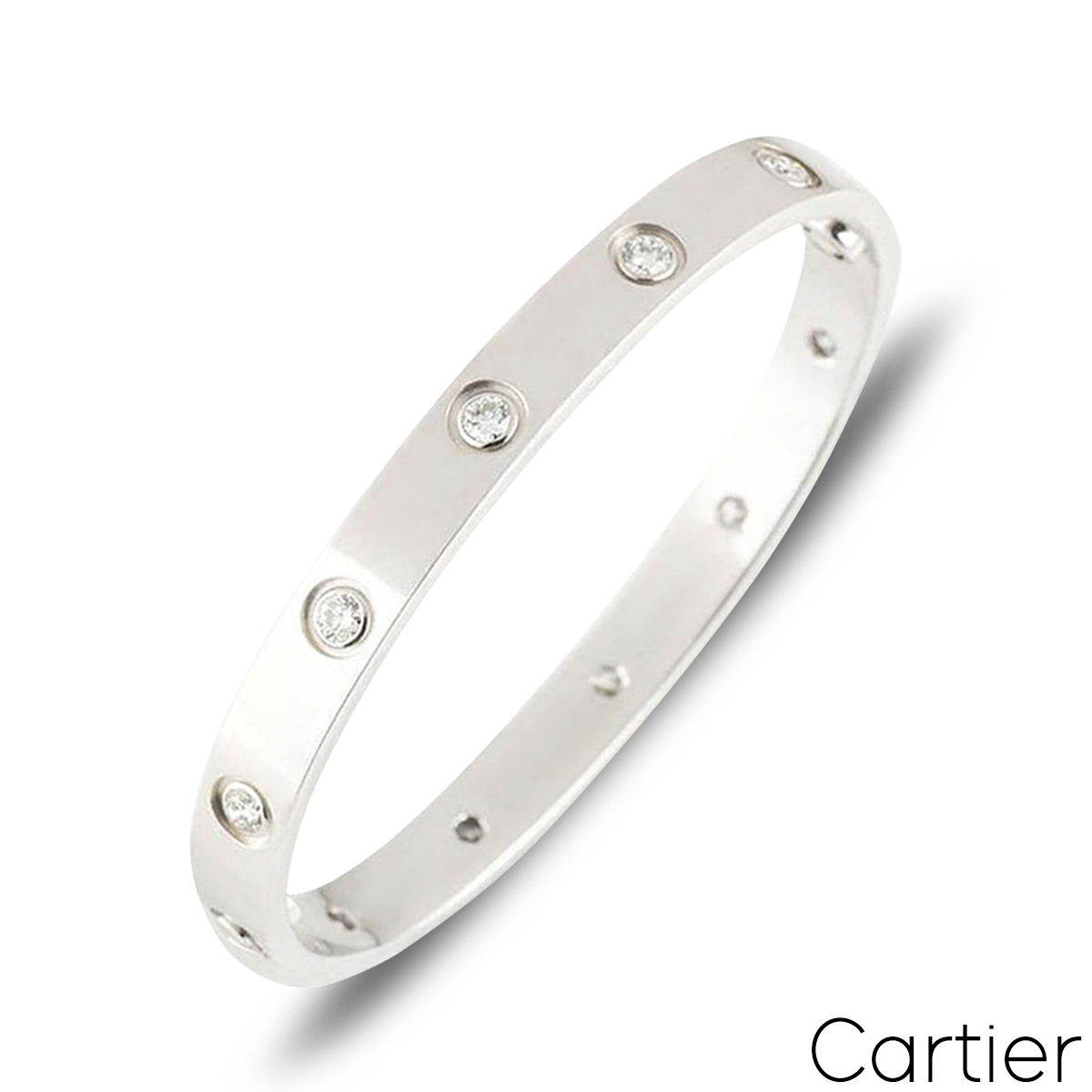 Cartier White Gold Full Diamond Love Bracelet Size 20 B6040720