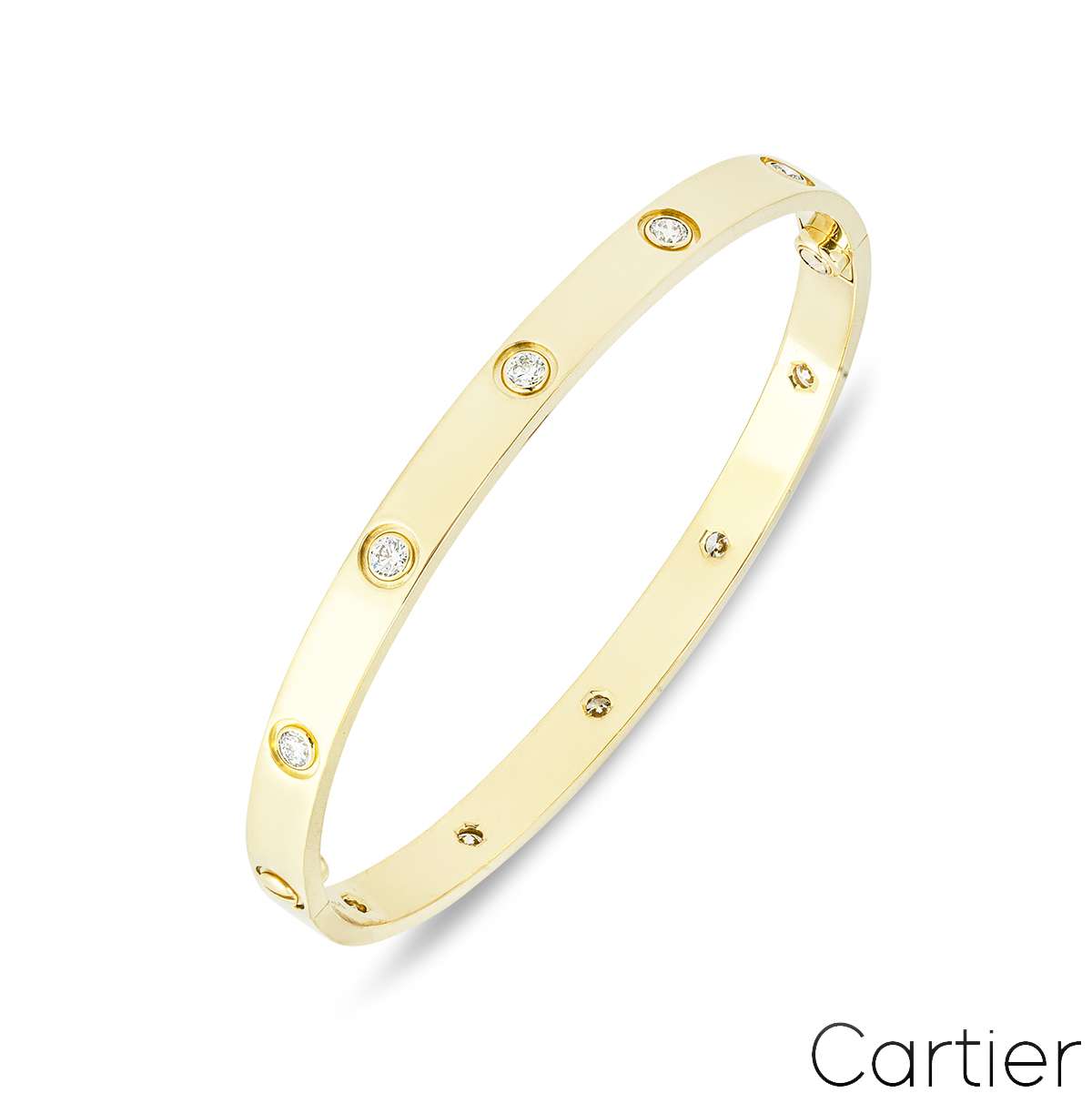 Cartier Yellow Gold Full Diamond Love Bracelet Size 19 B6040519