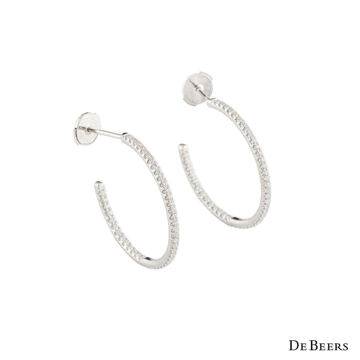 De Beers White Gold Diamond Hoop Earrings J2DD13Z00W04