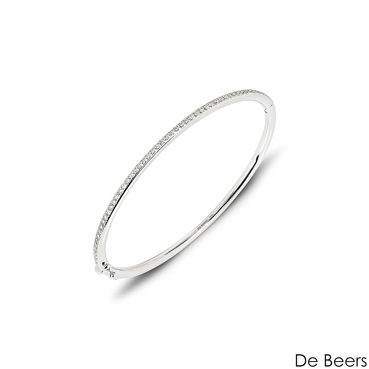 A stunning 18k white gold diamond necklace from the De Beers Wildflowers Collection. This piece features seven delicate flower motifs that graduate in size, each set with round brilliant cut diamonds for a total diamond weight of approximately 2.10 carats. The diamonds are well matched in colour and clarity. Measuring 15 inches around the neck with an additional 3.5-inch drop which is fully detachable. The necklace is finished with a diamond set jewellery style clasp, with a gross weight of 20 grams.