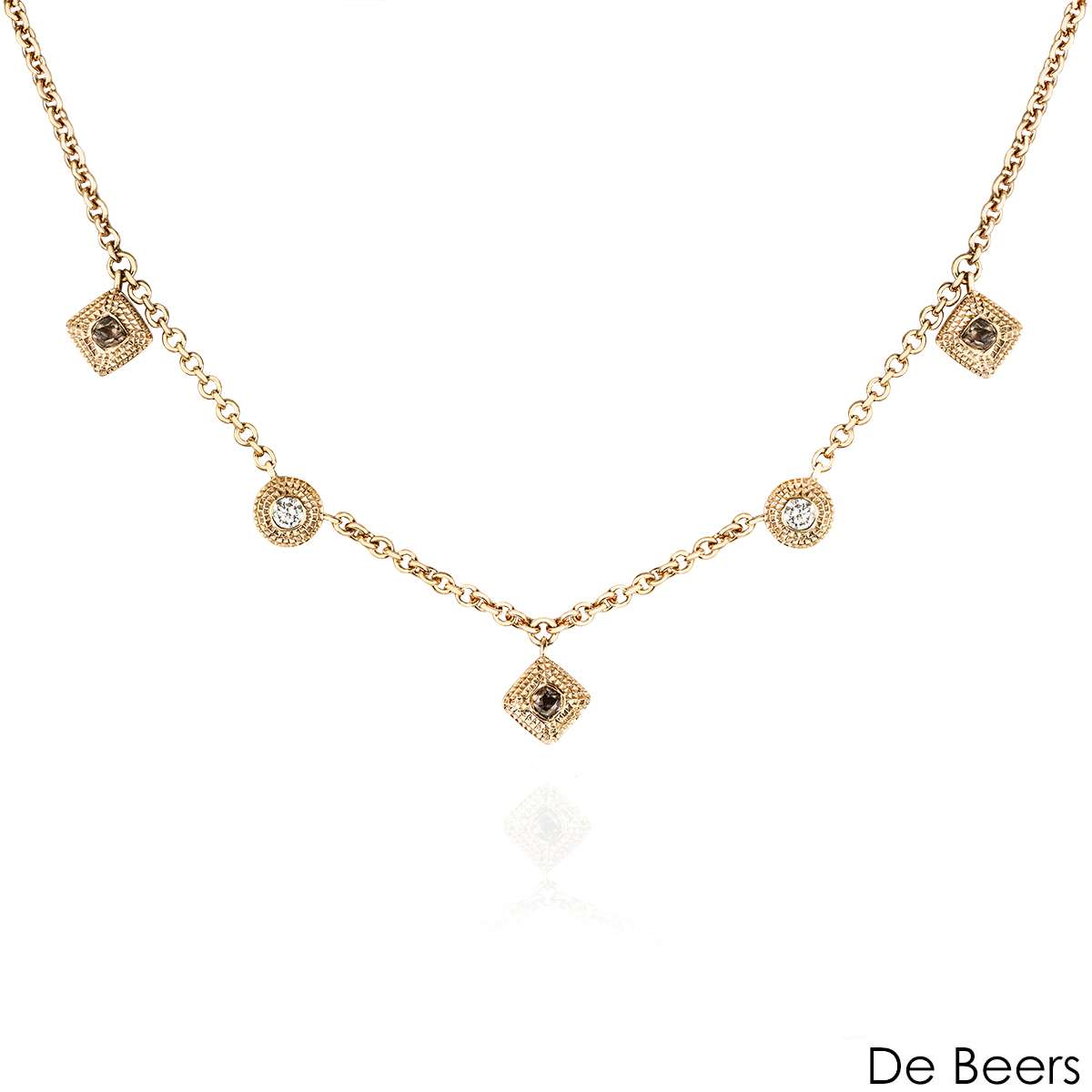 A beautiful 18k yellow gold bracelet by De Beers, from their Talisman collection. The bracelet features 5 textured charms, each set with rough and polished diamonds with an approximate total weight of ~0.30 carats, G+ colour and VS+ clarity. Measuring 7 inches with adjustable length loops at approximately 6.5 and 5.8 inches, all secured by a signed lobster clasp. The total gross weight of the piece is 6.8 grams.