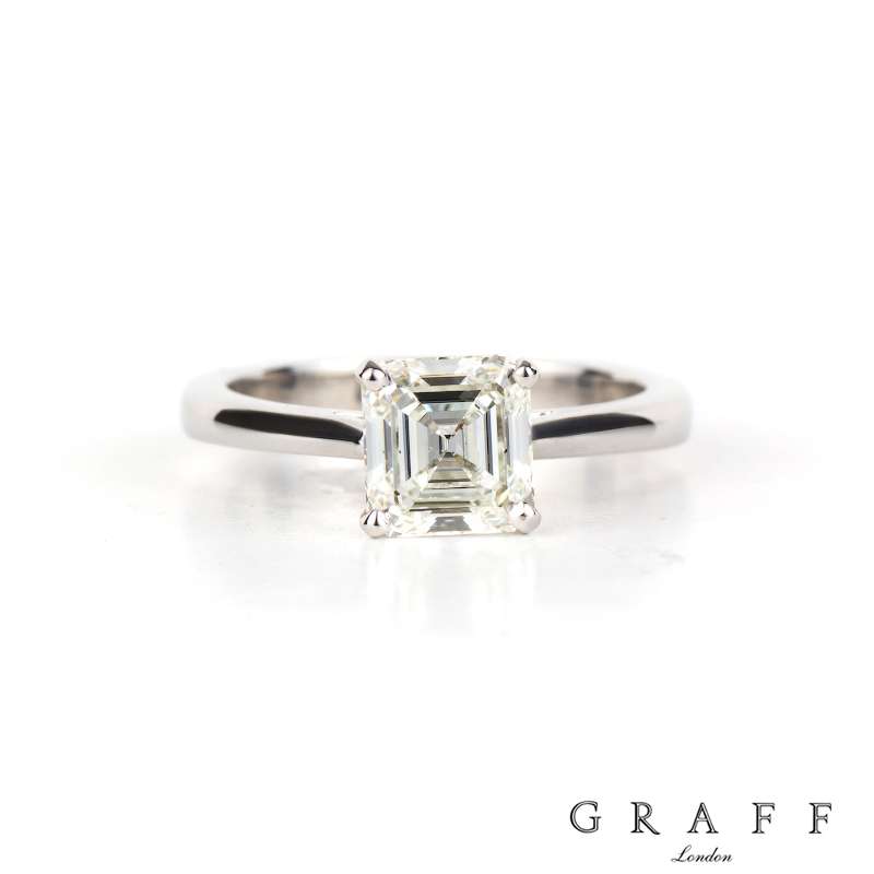 Graff 18k White Gold Square Emerald Cut Diamond Ring 1.52ct H VS1