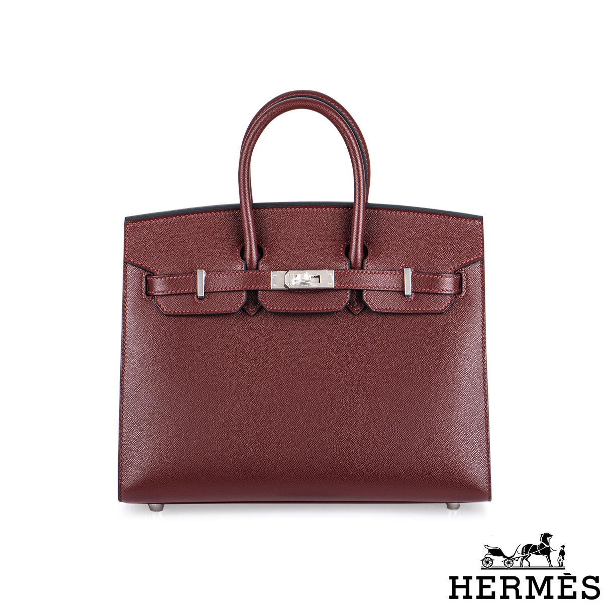 A gorgeous Hermès Birkin Sellier 25cm Rouge H bag. The exterior of this Birkin is in Rouge H Veau leather with tonal stitching. It features palladium hardware with two straps and front toggle closure. The interior is lined with Rouge H Veau leather and has a zip pocket with an Hermès engraved zipper pull and an open pocket on the opposite side. This bag is store fresh, full set with factory stickers on all hardware.