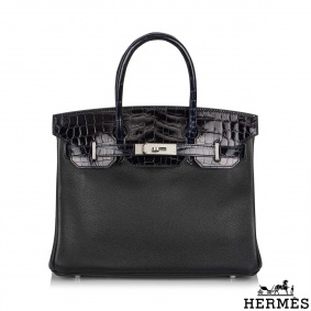 An exquisite Hermès 30cm Birkin bag. The exterior of this Birkin is in veau noir togo leather with tonal stitching. It features gold tone hardware with two straps and front toggle closure. The interior is lined with noir chevre and has a zip pocket with an Hermès engraved zipper pull and an open pocket on the opposite side.