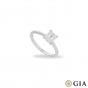 A captivating diamond solitaire ring. The ring is set with an asscher cut diamond weighing 0.97ct, F colour and VVS2 clarity. It measures 2mm in width, has a gross weight of 3.73 grams and is currently a size M½ but can be adjusted for the perfect fit.