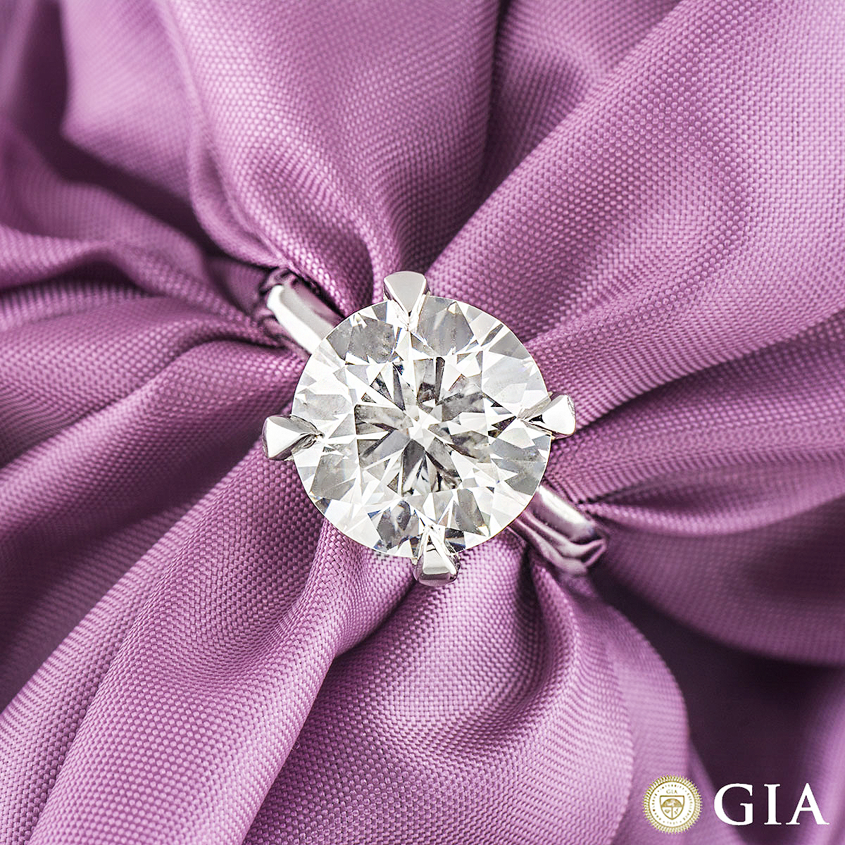A stunning platinum diamond engagement ring. The ring comprises of a round brilliant cut diamond in a 4 claw setting with a weight of 5.02ct, H colour and VVS2 clarity. Complementing the centre stone are diamond set shoulders with a total weight of 0.26ct, well matched in colour and clarity. The ring is a size K but can be adjusted for a perfect fit and has a gross weight of 6.80 grams.