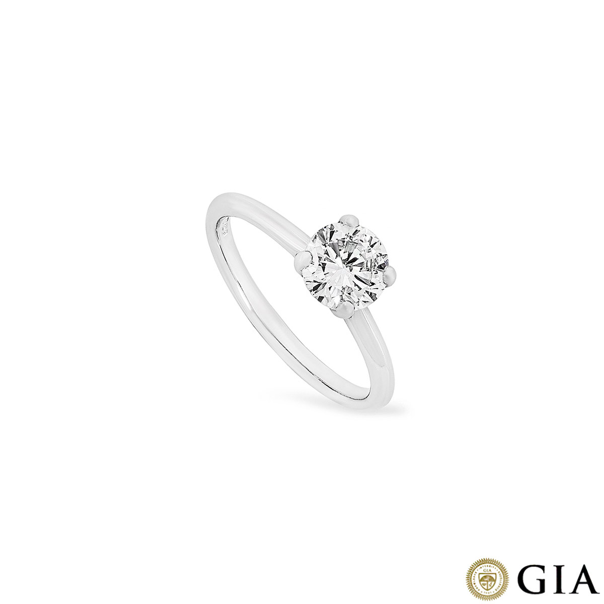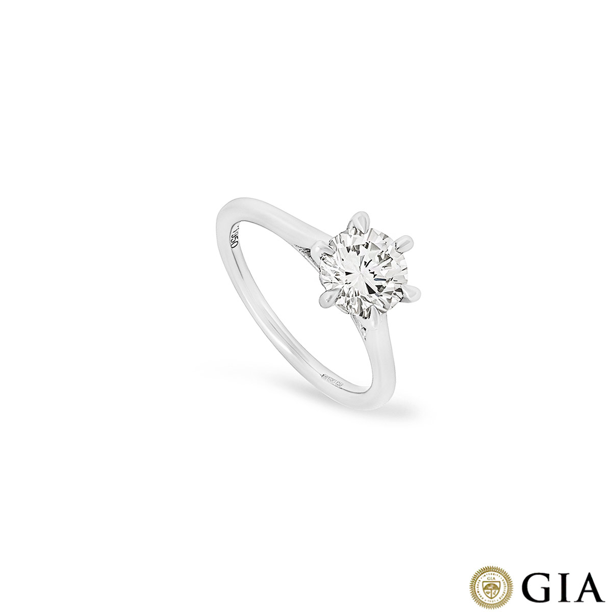 A sparkly platinum diamond engagement ring. The solitaire features a slight twist design set with a round brilliant cut diamond in a six prong mount weighing 1.08ct, I colour and SI2 clarity. The ring tapers from 1.25mm to 2.20mm wide, has a gross weight of 4.09 grams and is currently a size L½ but can be adjusted for the perfect fit.