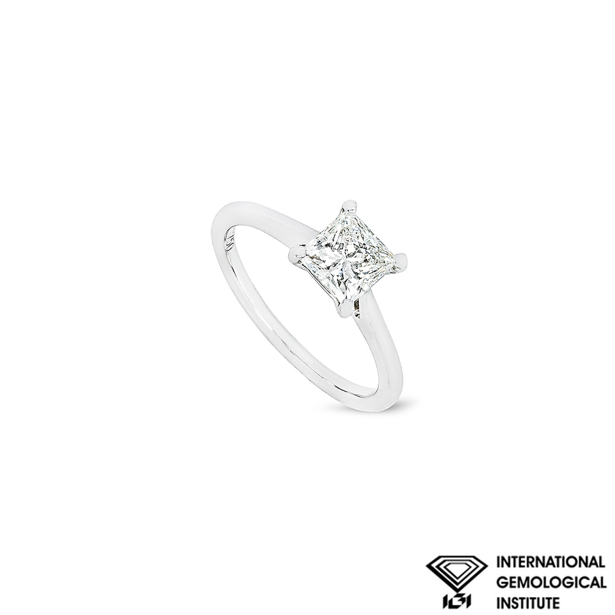 A modern platinum lab grown diamond engagement ring. The solitaire features a twisted rope design that is set with a round brilliant cut lab grown diamond weighing 1.01ct, F colour and VS1 clarity. The diamond scores an excellent rating in all three aspects for cut, polish and symmetry - this is known as a 'triple excellent' diamond. The 1.94mm wide ring has a gross weight of 4.05 grams and is currently a size M½ but can be adjusted for the perfect fit.