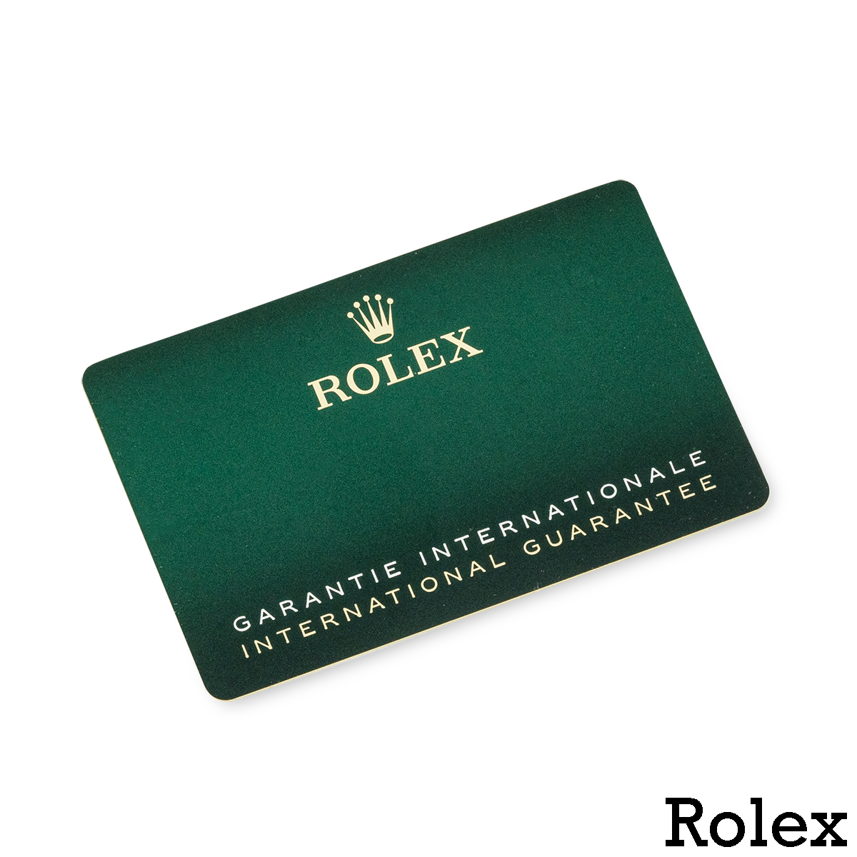 The cufflinks measure 15mm in width, 17mm in height, 18.5mm in depth, and have a gross weight of 14.4g. They are in unworn condition and are presented with a Rolex box and a warranty card dated June 2025.