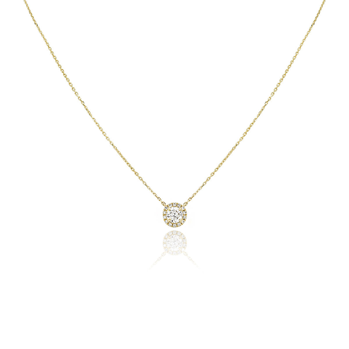 A stunning 18k rose gold diamond pendant. The pendant features a floating round brilliant cut diamond weighing approximately 0.30ct. The pendant suspends from an 15-inch trace link chain that finishes with a lobster clasp and has a gross weight of 1.4 grams.