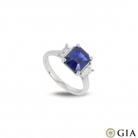 White Gold Royal Blue Sapphire & Diamond Ring 3.04ct