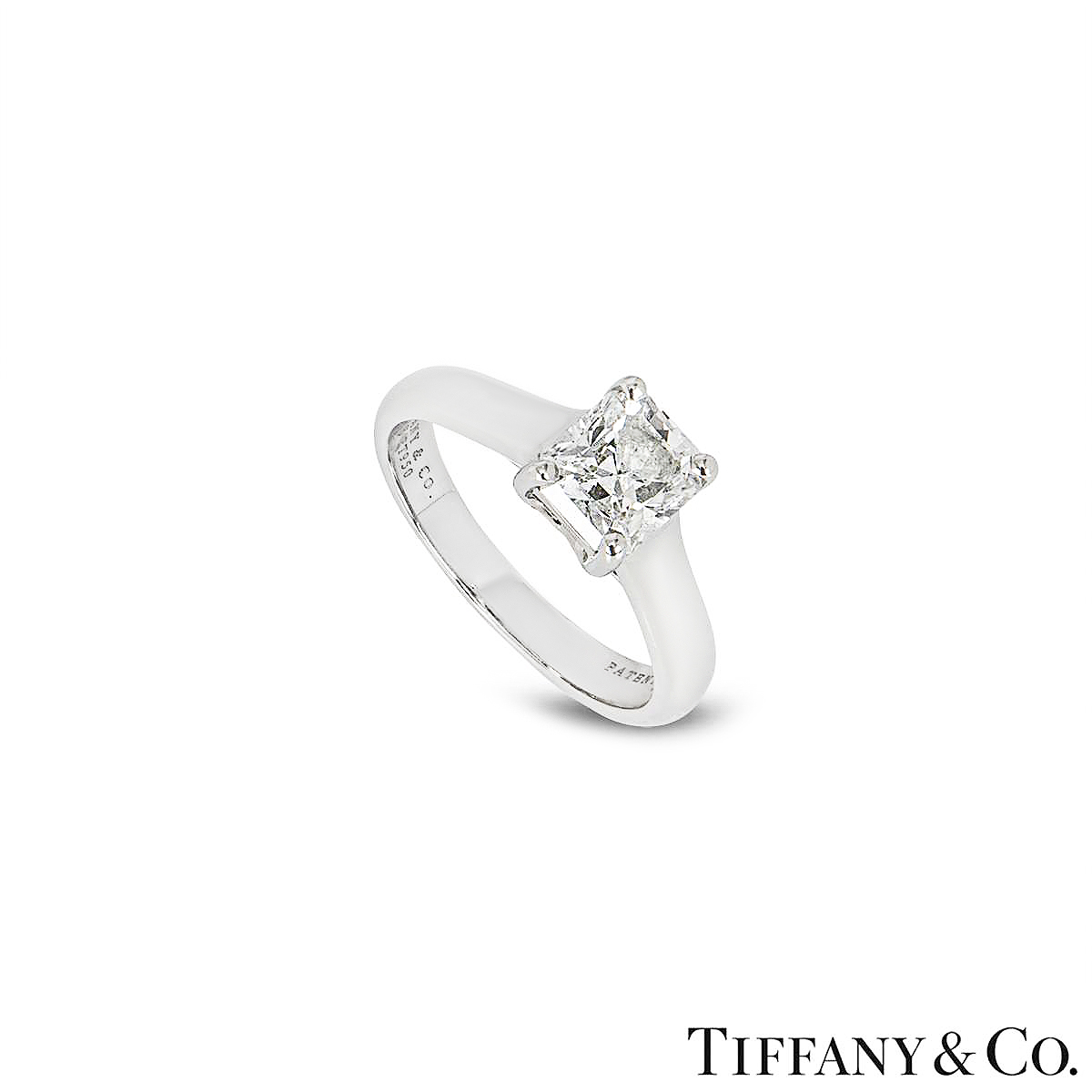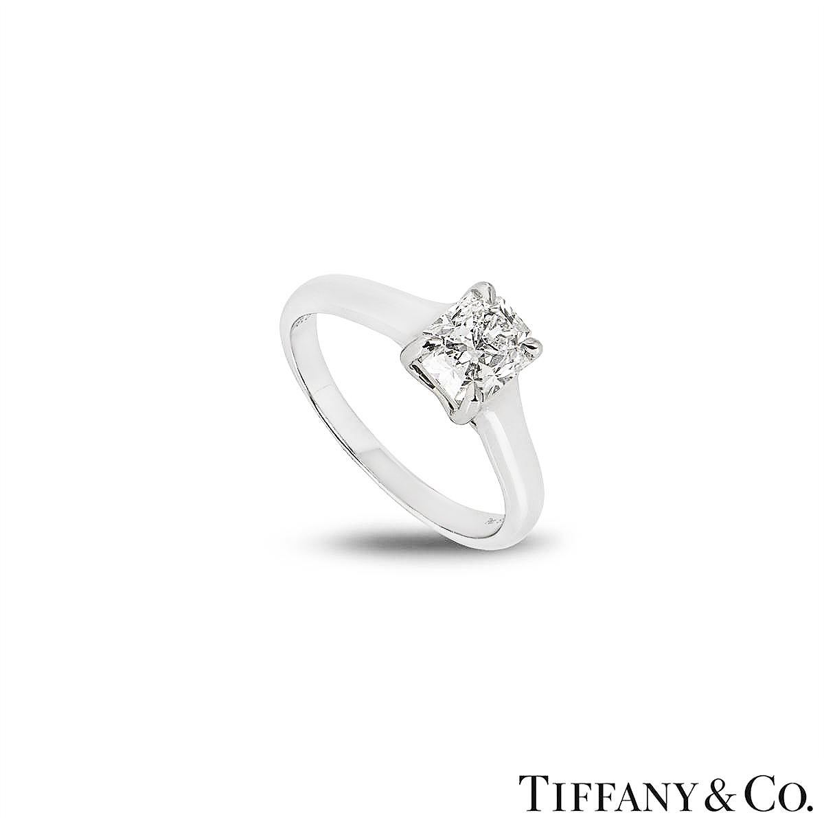 An alluring platinum Tiffany & Co. diamond ring from the Lucida collection. The ring comprises of a Lucida cut diamond in a 4 claw setting with a weight of 1.10ct, G colour and VVS1 clarity. The ring is a size I but can be adjusted for a perfect fit and has a gross weight of 5.30 grams.