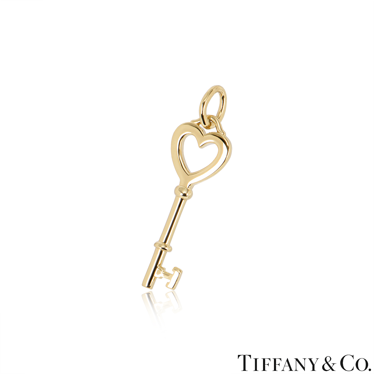 A beautiful 18k yellow gold pendant by Tiffany & Co. from the Tiffany Keys collection. The iconic key pendant features an openwork heart motif with an oval bail that allows a chain to be easily fitted through. The pendant measures 3.1cm and has a gross weight of 2.25 grams.