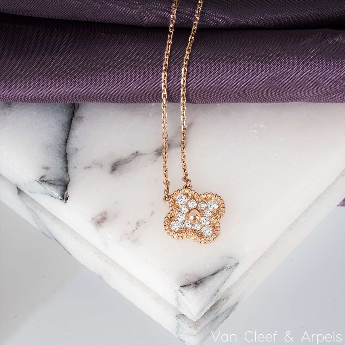 Van Cleef & Arpels Rose Gold Diamond Vintage Alhambra Pendant VCARP2R300