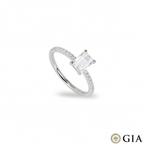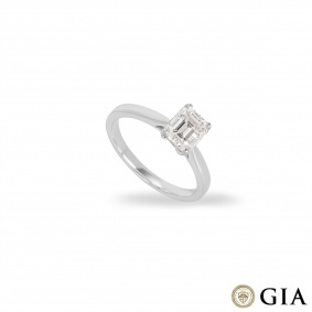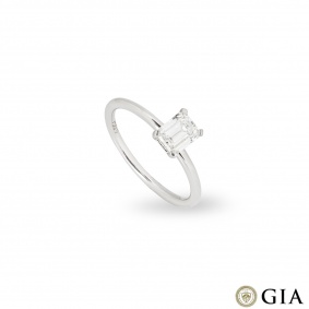 A captivating 18k yellow gold diamond engagement ring. The solitaire features an emerald cut diamond weighing 0.83ct, E colour and VS1 clarity. The diamond is set in a four prong mount on a classic 2mm band, has a gross weight of 3.16 grams and is currently a size M½ but can be adjusted for the perfect fit.