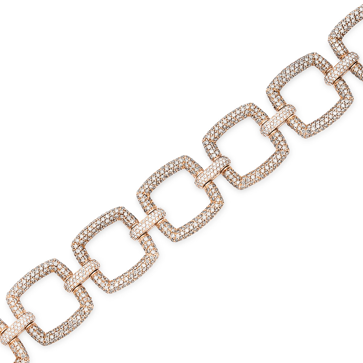A scintillating 18k yellow gold diamond set hinged bangle. The bracelet is pave set with 407 round brilliant cut yellow diamonds, varying in intensity, with an approximate total weight of 5.60ct. The 7.5mm wide bangle fits a wrist size of up to 16.5cm, finishes with a discreet tongue clasp and has a gross weight of 24.07 grams.